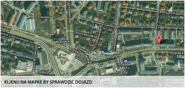 Siedziba naszej firmy mieści się ma pierwszym piętrze budynku przy ul. Mogilskiej 58.